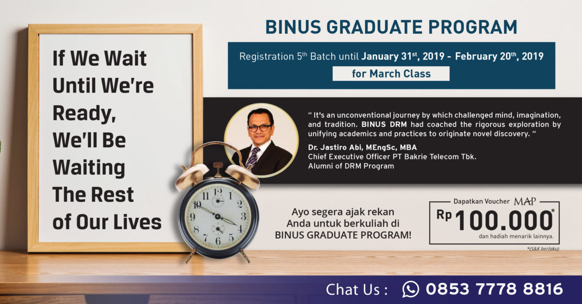 HomeGreetings / SlideshowBINUS GRADUATE PROGRAM – REGISTRATION BATCH 4 UNTIL January 16th, 2019 BINUS GRADUATE PROGRAM – REGISTRATION BATCH 4 UNTIL January 16th, 2019 19 Dec 2018 GreetingsSlideshow Share to your friends Cancel Reply